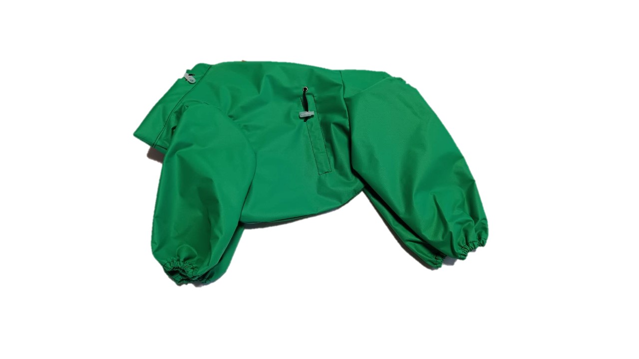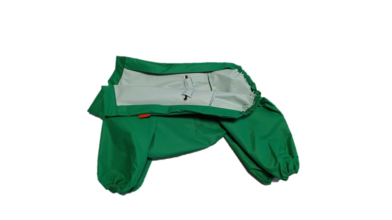 Изделие легко одевается и снимается. Застегивается сверху на спине на кнопки. Имеет возможность регулировки на талии, в вороте и манжетах, что дает возможность питомцам удобно себя чувствовать.