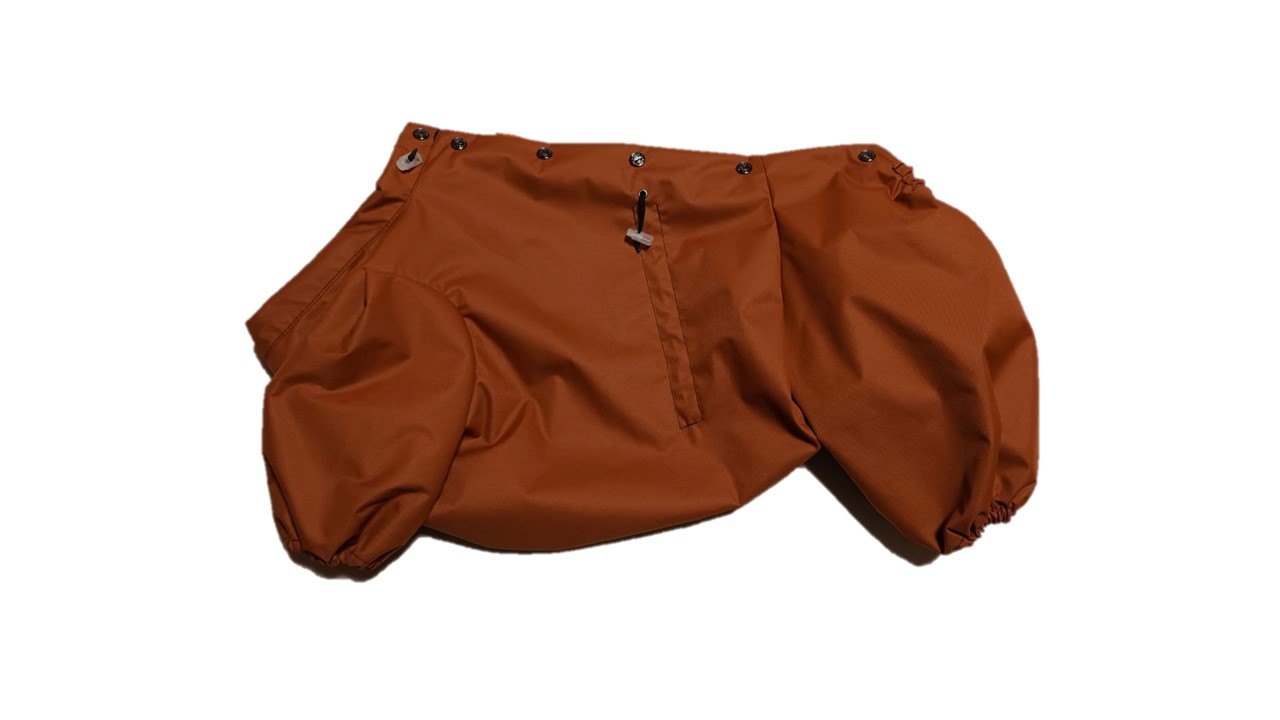 Изделие легко одевается и снимается. Застегивается сверху на спине на кнопки. Имеет возможность регулировки на талии, в вороте и манжетах, что дает возможность питомцам удобно себя чувствовать.
