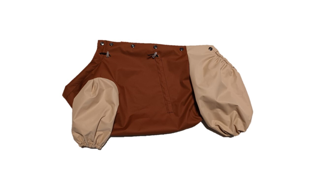 Изделие легко одевается и снимается. Застегивается сверху на спине на кнопки. Имеет возможность регулировки на талии, в вороте и манжетах, что дает возможность питомцам удобно себя чувствовать.